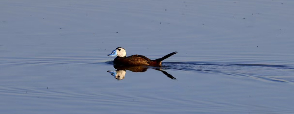I still remember the moment I first spotted it—a small, round duck gliding across the still waters of Ulungur Lake, its head gleaming white under the sun. The white-headed duck!
